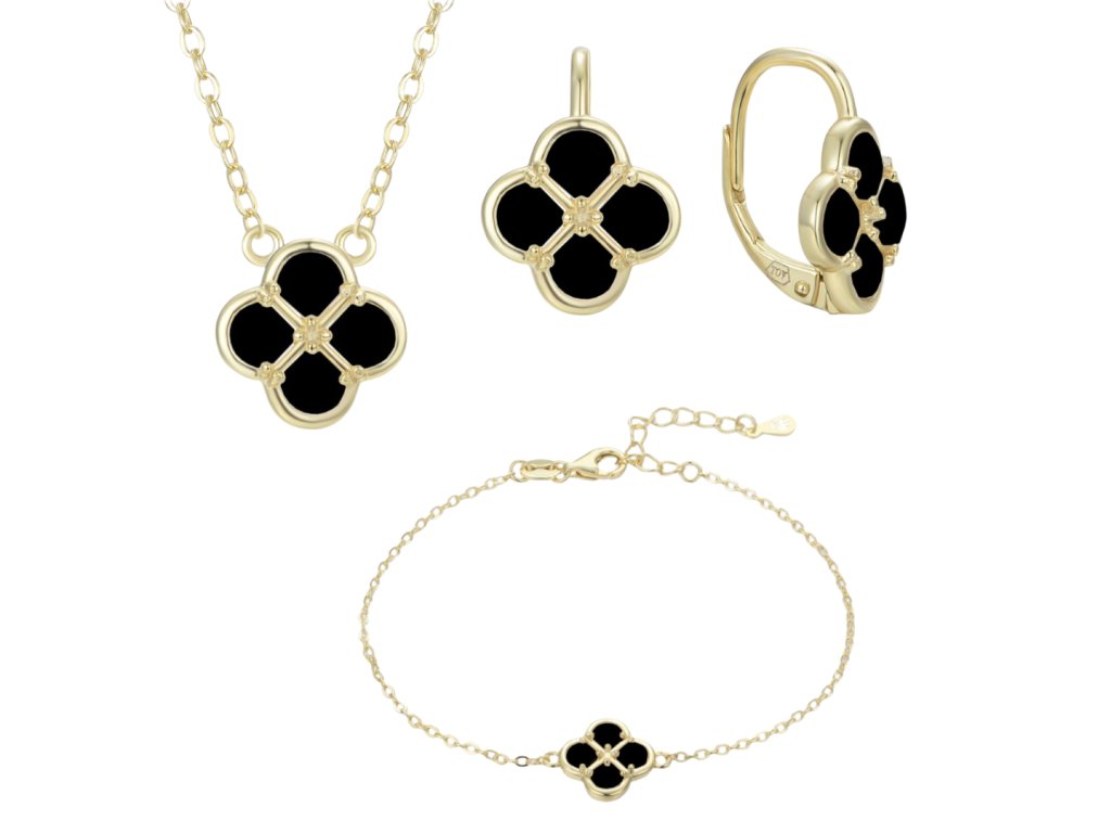 Zvýhodněná sada s černou perletí ve tvaru čtyřlístku pozlacený