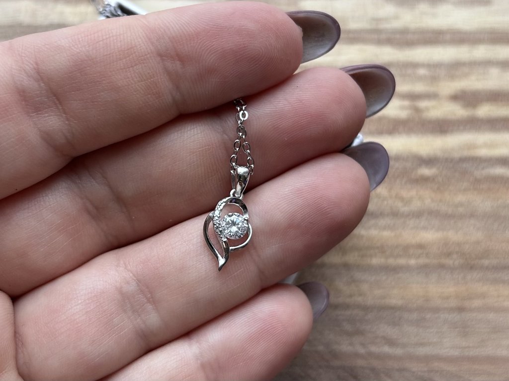 Design: Jemný motiv srdce u náhrdelníku i náušnic. Centrální zirkon je doplněn elegantními liniemi a drobnými kamínky, které dodávají decentní třpyt.